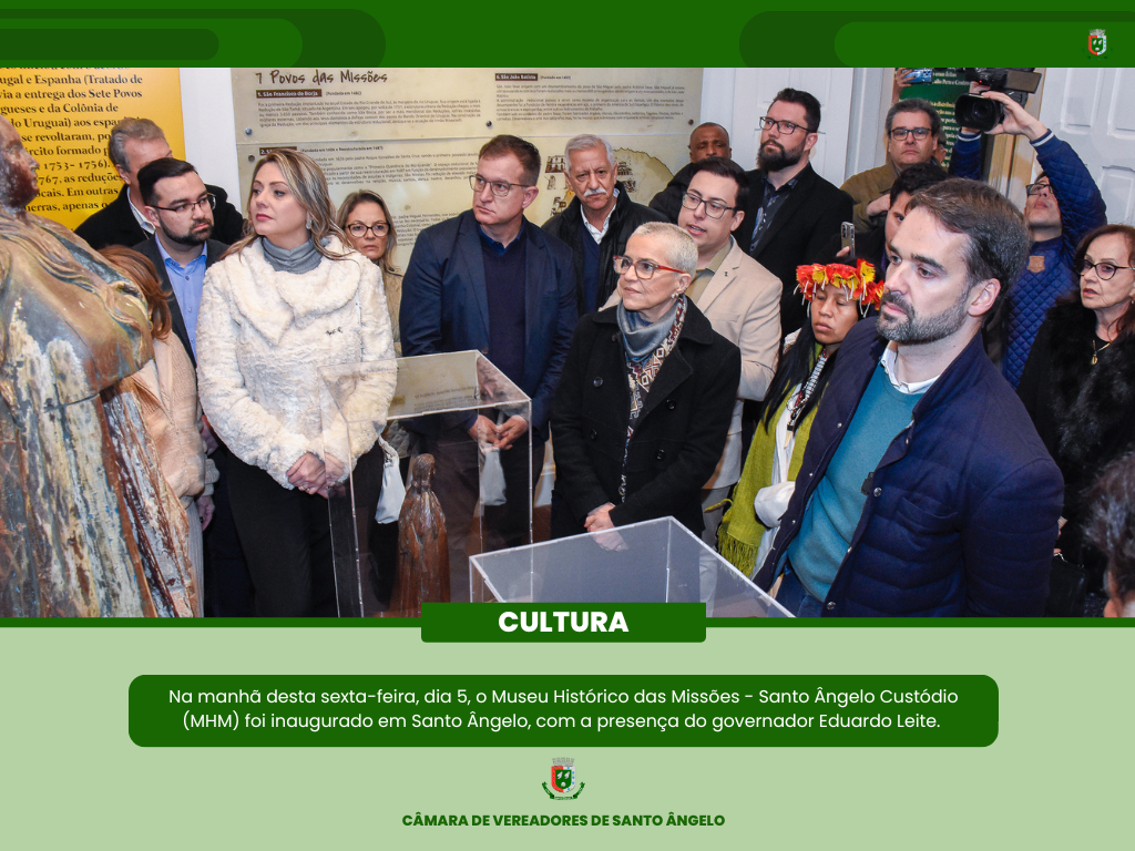 Na manhã desta sexta-feira, dia 5, o Museu Histórico das Missões - Santo Ângelo Custódio (MHM) foi inaugurado em Santo Ângelo, com a presença do governador Eduardo Leite. O MHM é um espaço amplo e destacado que conecta passado, presente e futuro, valorizando a memória histórica das Missões.