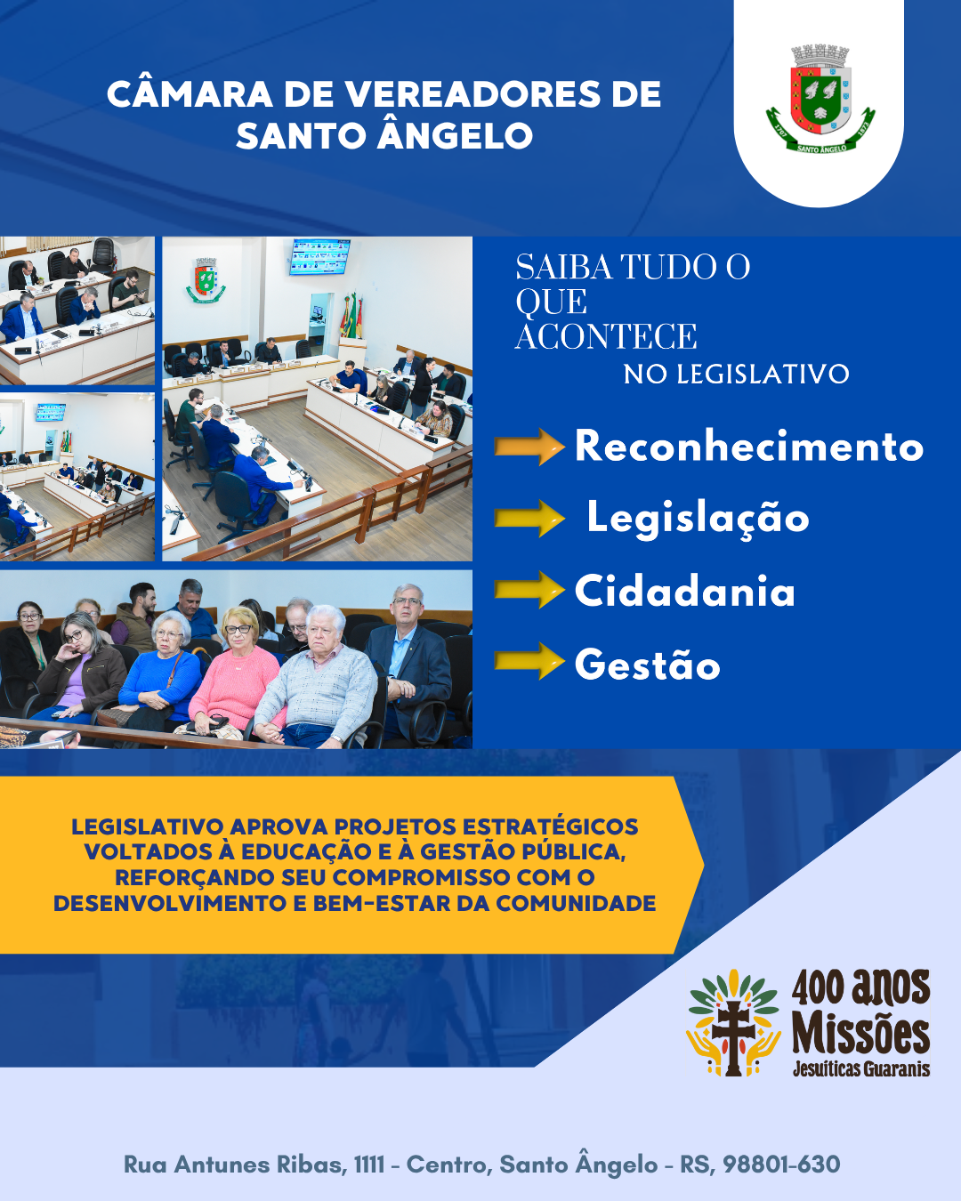 Na noite da última terça-feira,28, a Câmara de Vereadores de Santo Ângelo realizou mais uma sessão ordinária. Foram aprovados dois projetos de lei e uma moção de aplauso, demonstrando o compromisso dos parlamentares com a gestão pública e o reconhecimento de trajetórias que fazem a diferença na comunidade.