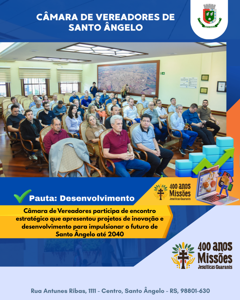 Com a participação ativa da Câmara de Vereadores, o encontro reafirmou o compromisso coletivo de construir um ambiente de negócios sólido e sustentável, projetando Santo Ângelo como referência em inovação e desenvolvimento regional.
