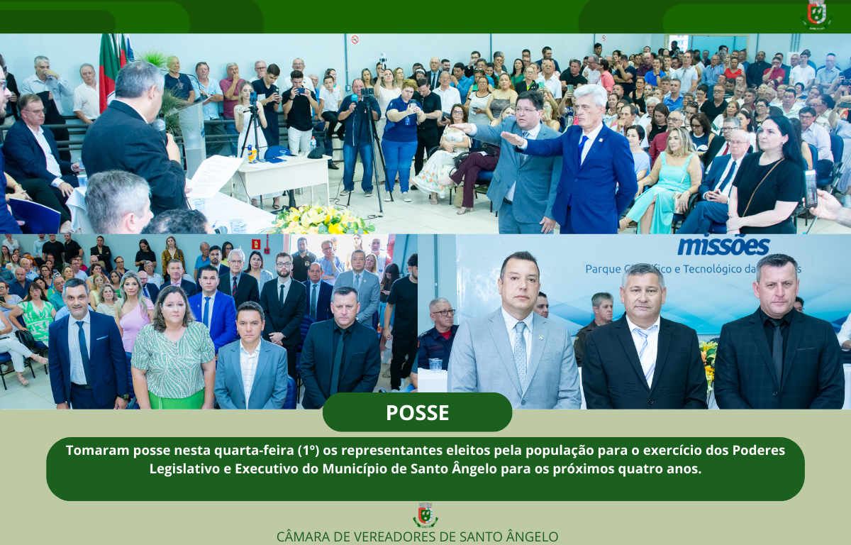 Tomaram posse nesta quarta-feira (1º) no salão de eventos da TecnoUri os representantes eleitos pela população para o exercício dos Poderes Legislativo e Executivo do Município de Santo Ângelo para os próximos quatro anos. Os 15 vereadores e vereadoras, o prefeito Nivio Braz (PL) e o vice - Carlos Gonçalves (PP) prestaram o compromisso legal e assumiram seus cargos.