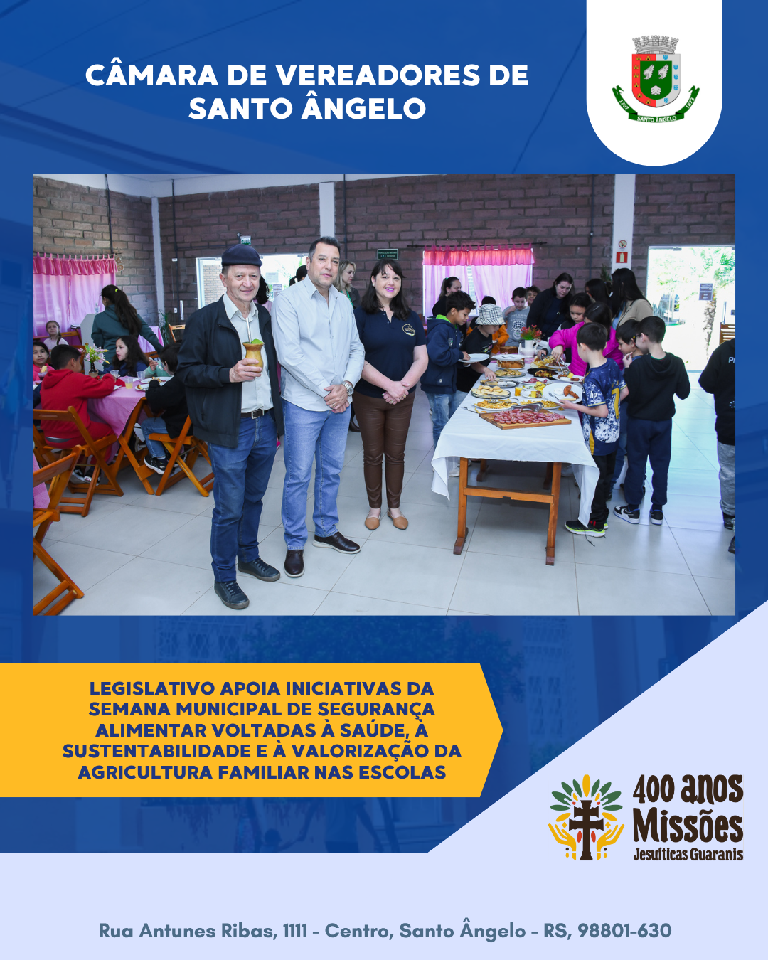 Na manhã de terça-feira, 14, o Pavilhão da Feira da Agricultura Familiar recebeu alunos das escolas Orlando Sparta de Souza e Miguel Bosniak para um café colonial missioneiro. O vice-presidente da Câmara de Vereadores, Carlos Gromoski, participou do encontro e ressaltou a relevância da iniciativa: “Quando cuidamos da alimentação das nossas crianças, estamos semeando mais do que saúde. Estamos plantando dignidade, respeito e esperança. Que cada prato servido seja também um gesto de amor ao próximo, porque alimentar com justiça é servir com propósito.”