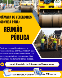 30 de outubro de 2025 Câmara promove reunião pública para esclarecer serviços prestados pela CORSAN/AEGEA à comunidade