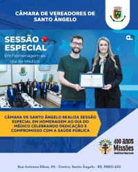 Legislativo de Santo Ângelo realiza sessão especial em homenagem ao Dia do Médico - 27 de outubro de 2025 Câmara promove evento sobre saúde mental e empreendedorismo feminino