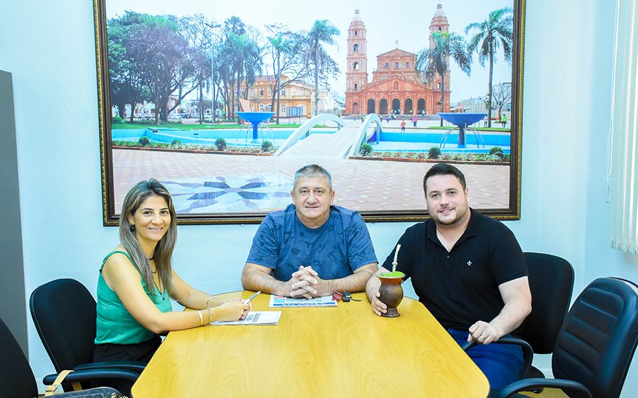 Em reunião com a Câmara de Vereadores, nesta manhã (17), esteve presente com o presidente, Pedro Waszkiewicz, e o vereador, Maurício Loureiro, a coordenadora da Coordenadoria da Mulher (CMM), Simone Lunkes.