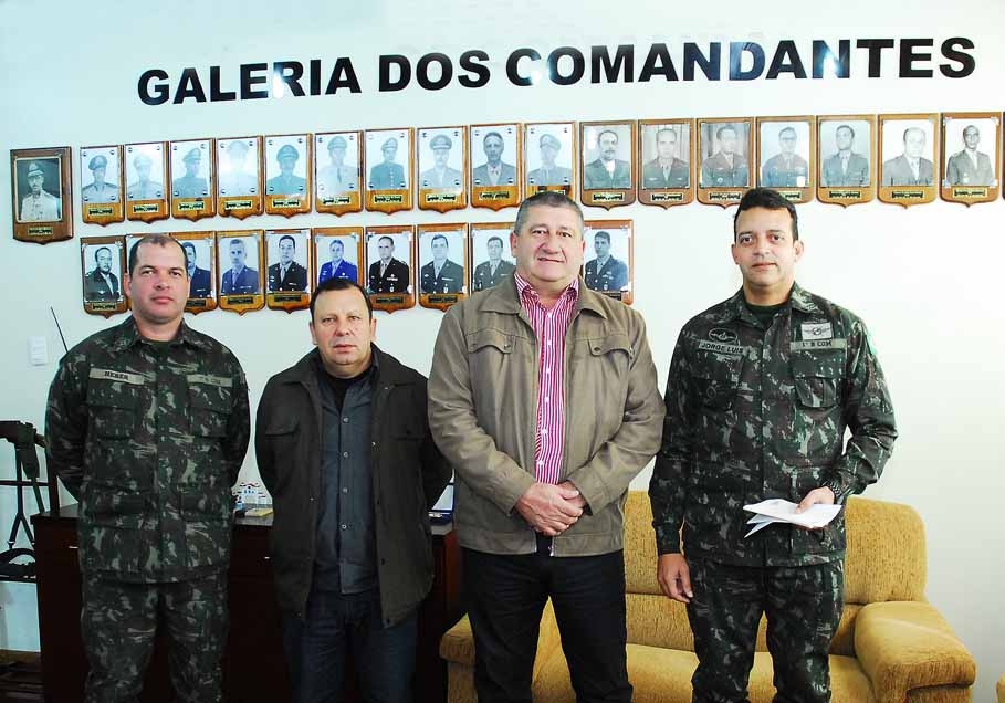 O Presidente da Câmara de Vereadores de Santo Ângelo, Pedro Waszkiewicz - Pedrão (PDT) e o vereador Osvaldir Ribeiro de Souza – Vando (PMDB), estiveram na manhã desta quinta-feira, dia 02, reunidos com o comandante do 1º BCom, Coronel Jorge Luís Ferreira e com o Capitão e Instrutor Chefe do NPOR - Núcleo de Preparação de Oficiais da Reserva –, Herber dos Reis.