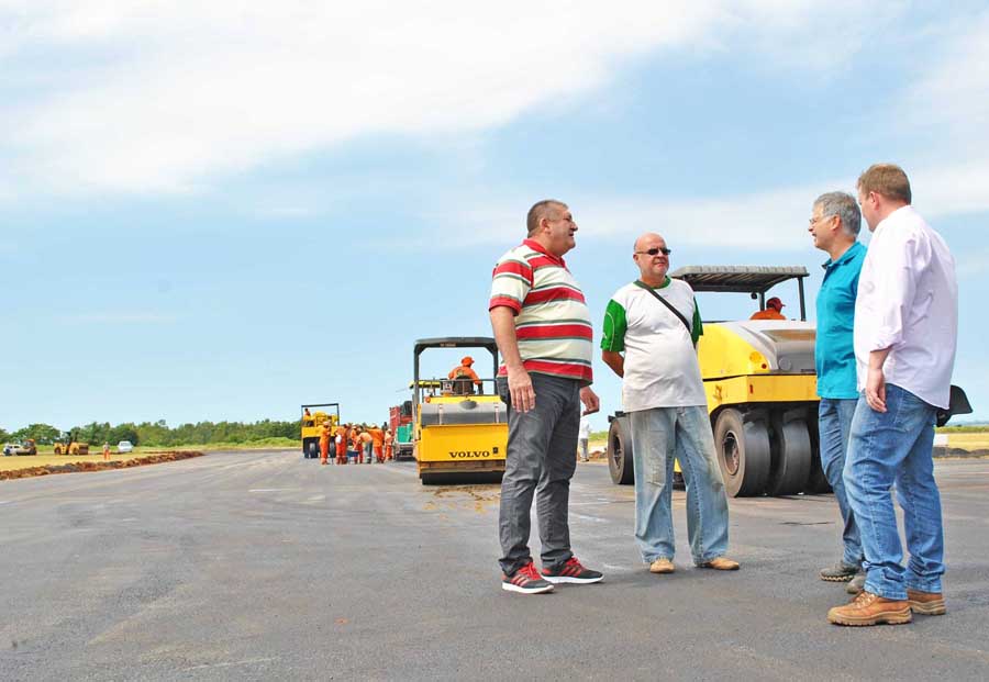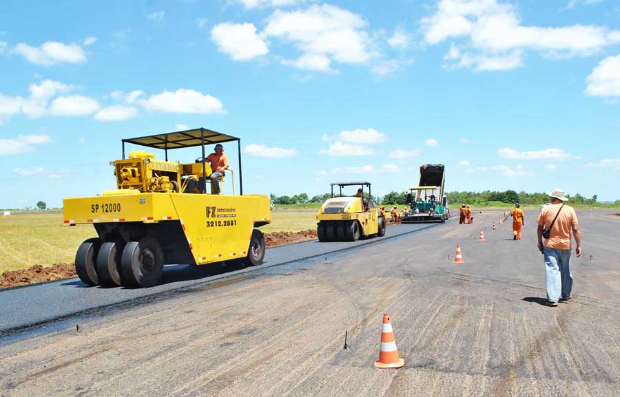 Foi retomada nesta quarta-feira, dia 20, a aplicação do pavimento asfáltico em partes da pista do Aeroporto Sepé Tiaraju. O objetivo desta etapa é nivelar a pista para que, posteriormente, tenha início o processo de aplicação da última camada da malha asfáltica.