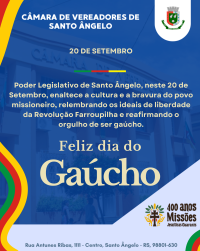 -   18 de setembro de 2025 Câmara de Vereadores de Santo Ângelo parabeniza os gaúchos pelo orgulho e legado farroupilha