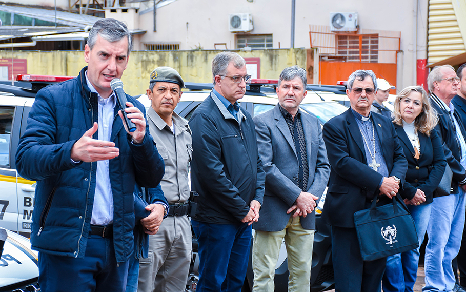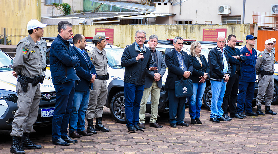 Após a cerimônia de entrega dos veículos, foram acionadas as sirenes das viaturas dos órgãos de segurança do município, como forma de homenagear os soldados Marcelo de Fraga Feijó e Rodrigo da Silva Seixas, do 19º Batalhão de Polícia Militar (BPM), mortos em serviço na noite da última quarta-feira, 26, em Porto Alegre.